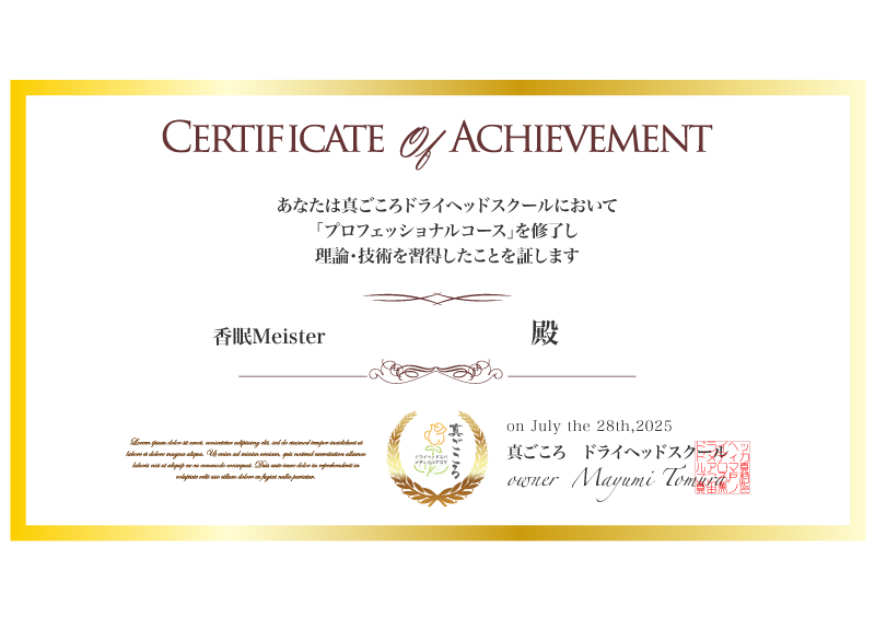 - 香眠メソッド認定証